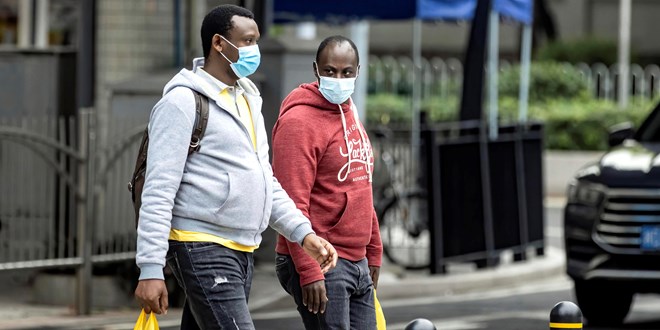 People wearing masks in Guangzhou, Guangdong province. Video posted on social media over the weekend showed people of African descent being evicted, sleeping rough and being refused service in shops © Alex Plaveski/EPA/Shutterstock