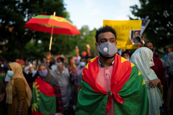 Demonstrators protesting the political situation in Ethiopia in the wake of the death of musician Hachalu Hundessa. Jeff Wheeler/Star Tribune via Getty Images