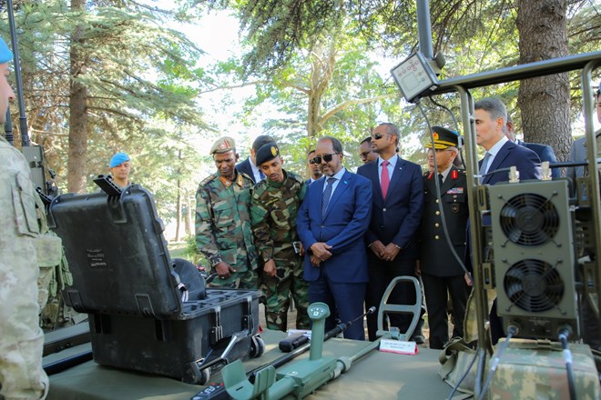 Mogadishu (HOL) - Somali President Hassan Sheikh Mohamud visited the commando training center in Isparta, Turkey, on Tuesday, where Somali soldiers received training under an army cooperation pact between the two countries.