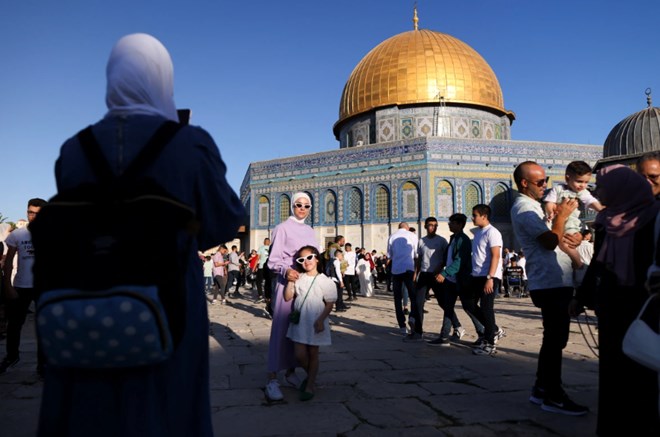 Palestinians celebrate on the first day of Eid al-Adha in Jerusalem [Ammar Awad/Reuters]