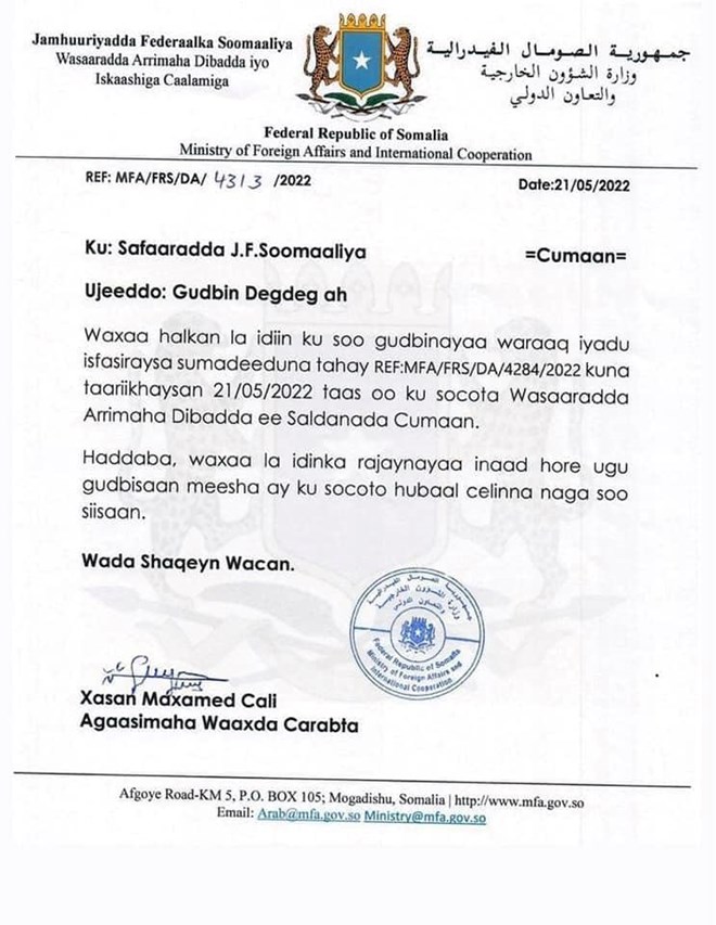 Abdisaid Muse did not respond to the Prime Minister's allegations. Still, reports indicate that the Prime Minister's working relationship with his foreign minister has not been good since former President Mohamed Abdullahi Farmaajo appointed him to replace Mohamed Abdirizak Mohamud Abubakar as foreign minister.