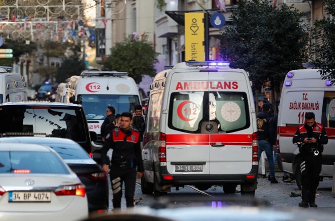 Ambulances arrive near the scene of an explosion in central Istanbul's Taksim area [Kemal Aslan/Reuters]