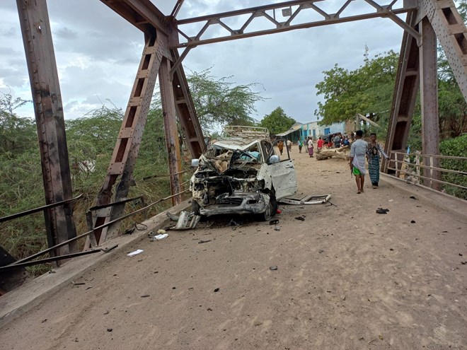 Beledweyne (HOL) - A car bomb explosion damaged part of the key bridge in the Bulaburde district on Wednesday, local officials and residents say.