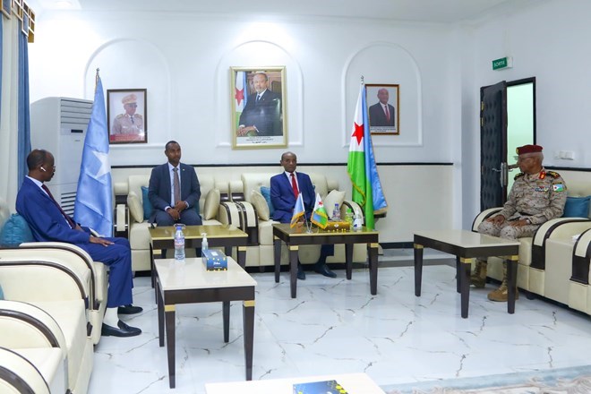 Mogadishu (HOL) - Somali Minister of Defense, Abdulkadir Mohamed Noor, met with his Djiboutian counterpart, Hassan Omar Mohamed Burhan and Djibouti's Armed Forces Commander, Gen Zakariye Sheikh Ibrahim, in Djibouti on Monday.