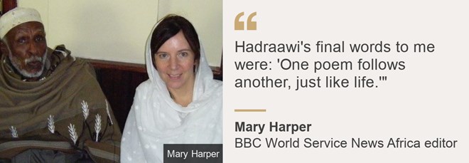 "Hadraawi's body is gone," he said. "But he is still with us and will always be with us because his literature will live forever."