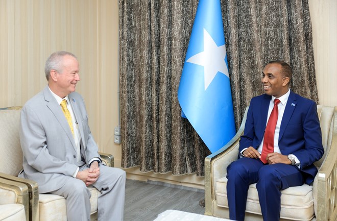 Mogadishu (HOL) - Somali Prime Minister Hamse Abdi Barre met with outgoing United States Ambassador to Somalia Larry Andre in Mogadishu on Wednesday.