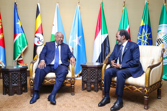 Djibouti (HOL) - Somali President Hassan Sheikh Mohamud met with his Djiboutian counterpart, Ismail Omar Guelle, on Saturday on the sidelines of the 41st extraordinary session of the IGAD Assembly of Heads of State and Government in Djibouti City.