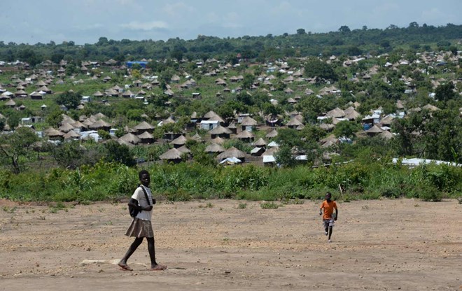 Children walk along a road in the Bidi Bidi refugee settlement in northwestern Uganda. (Gioia Forster / Picture Alliance via Getty)