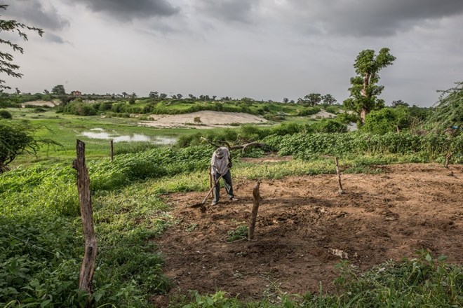 A farmer cultivates a field in Belvedere, Senegal, August 12, 2020. Senegal is part of the Great Green Wall, which is Africa's flagship initiative to combat the increasing desertification. (Xinhua/Eddy Peters)