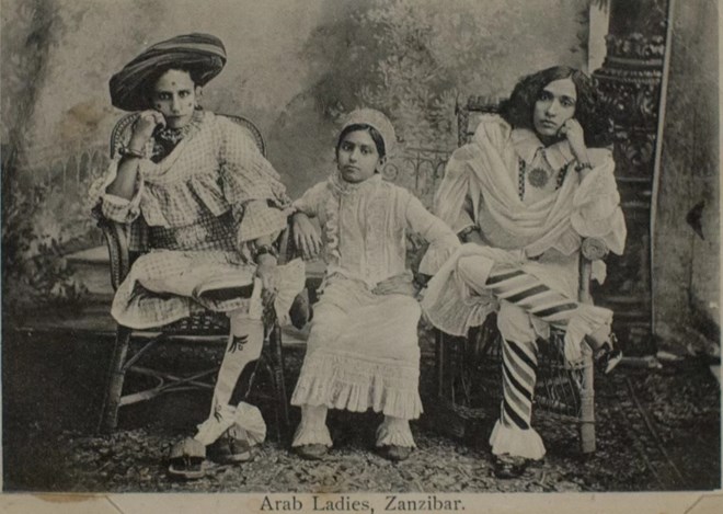 Arab Ladies, Zanzibar by A.C. Gomes & Son. Photograph taken before 1900; postcard printed 1910. Pearl Mak/NPR