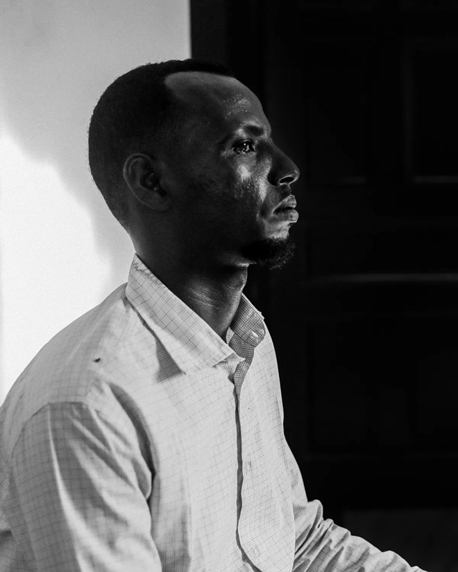 Qasim Dahir Mohamed, who found his sister Luul’s body after the US drone strike, poses for a photo in Mogadishu, Somalia, on May. 10, 2023. Photo: Omar Faruk for The Intercept