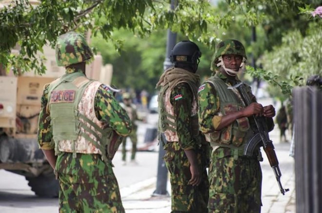 Kenyan police officers stand together during a joint operation with Haitian Police, in Port-au-Prince, Haiti July 29, 2024. REUTERS/Jean Feguens Regala/File Photo