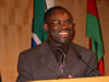 Emeagwali speaking at the Pan African Conference on Brain Drain, Elsah, Illinois on October 24, 2003.