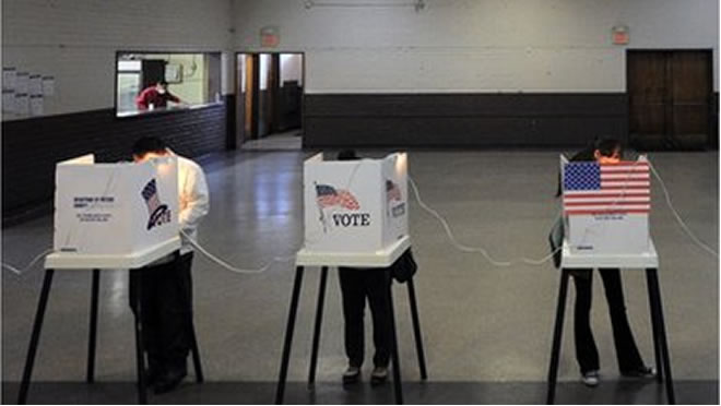 Malaayiin Mareykan ah ayaa u dareeray goobaha codbixinta si ay wakhtiga ugu dheeraayeen musharaxa xisbiga Dimuquraadiga Barack Obama amaba ay caynaanka Washington ugu dhiibaan Musharaxa Jamhuuriga Mitt Romney.