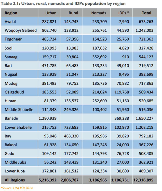 Secondly, on their demographic table, places Hiraan's total population of both urban and rural inhibitors at 216,916 people. This is inaccurate. Hiiraan is one the region with the highest numbers in all of Somalia since its growth in 1961.