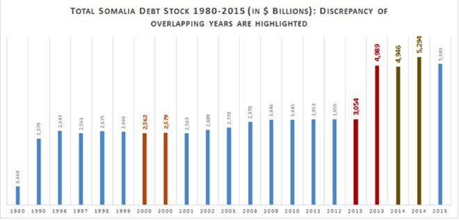 Barkinka: Figure 1 – Total Somalia Debt Showing Overlapping Discrepancy Years